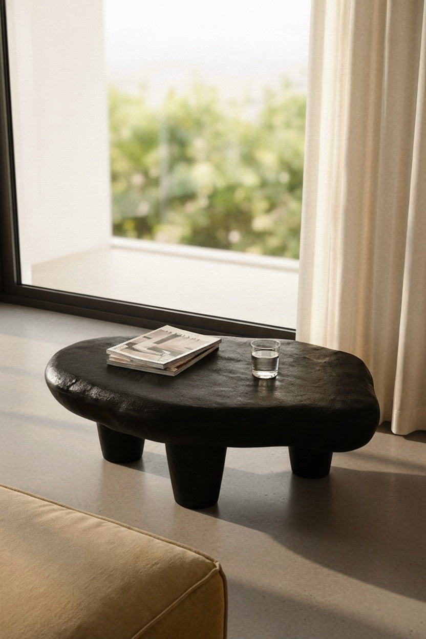 Minimalist and modern, the Cairn Coffee Table is a solid anchor for any room, with its powder coated top and rustic form. An edgy contrast to modern living spaces.